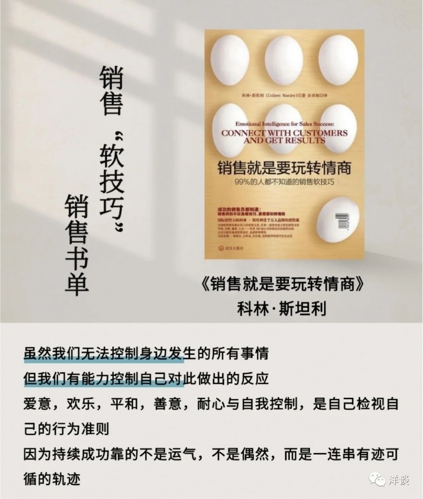 前段時間幾個同事來找我傾訴,說客戶的溝通該做的我都做了,最后怎么客戶不理我了?我們一起分析原因,商量對策。后來我把大家遇到的問題進行了歸納總結(jié),準(zhǔn)備分析探討一個主題:為什么客戶不理我。在充實材料的時候,我發(fā)現(xiàn)了一本好書,它從問題的本質(zhì)、理論的依據(jù)以及實操的維度解答了大家的困惑。今天和大家分享這本書的精髓。書名叫作《銷售就是要玩轉(zhuǎn)情商》,它的副標(biāo)題是“99%的人都不知道的銷售軟技巧”,在博雅、思文書屋都有賣。