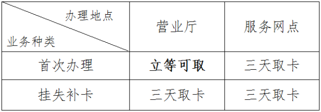 (2)非實名卡:任一服務(wù)網(wǎng)點直接辦理,無需證件,遺失不補。