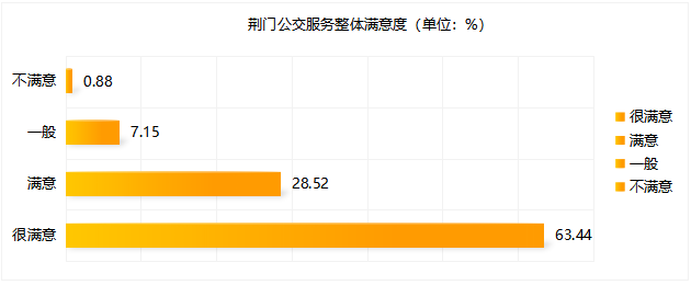 本次調(diào)查共收集有效問卷1471份,623條相關(guān)問題及建議。問卷涵蓋公交線網(wǎng)優(yōu)化、文明服務(wù)、換乘便捷度、候車時間、乘車舒適度、智能信息建設(shè)等多方面內(nèi)容。調(diào)查顯示,參與投票人群年齡結(jié)構(gòu)主要集中在18~59歲,其中以40~59歲為主體。(一)公交服務(wù)滿意度指標(biāo)及數(shù)值根據(jù)交通運輸部GB/T 36953.2-2018城市公共交通乘客滿意度評價方法,公共交通乘客滿意度指乘客對公共交通服務(wù)質(zhì)量的滿意程度,評價程度設(shè)置為“很滿意”、“滿意”、“一般”與“不滿意”。問卷顯示荊門公交服務(wù)整體滿意度為91.96%。問卷顯示公交線網(wǎng)分布不均、線路不合理、換乘不便捷為主要服務(wù)訴求,公交線路分布不均為“不滿意度”投票最高問題;主干道公交優(yōu)先通行權(quán)為服務(wù)訴求投票最高關(guān)注點。 此次問卷調(diào)查,感謝廣大市民乘客的積極參與,市公交集團(tuán)將結(jié)合實際,認(rèn)真聽取、采納乘客提出的意見及建議,予以改進(jìn): 關(guān)于線路運營方面,對5路線(圣境山—?;郏?8路線(東寶碧桂園—楊家橋)、58路線(碧桂園北—漳河新區(qū)政務(wù)中心)、59路線(荊楚理工學(xué)院—掇刀區(qū)政務(wù)中心)早中晚客流高峰期加密營運班次和增設(shè)區(qū)間班次,對33路線(楚天學(xué)校—興化三路東)、69路線(雙喜小學(xué)—園博園東門)、13路線(牌樓—園博園西門)進(jìn)行線路優(yōu)化,方便沿線居民出行需求;近期擬開通碧桂園翡翠公館至長崗萬人社區(qū)、東寶政務(wù)中心至市政務(wù)中心公交線路,具體方案正逐步規(guī)劃中。