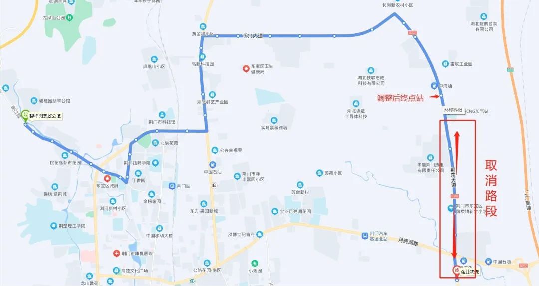 具體為:碧桂園翡翠公館—宏業(yè)物流調(diào)整為碧桂園翡翠公館—環(huán)球科陽(荊東大道),暫時(shí)取消荊東大道與長(zhǎng)崗一路交匯處—宏業(yè)物流區(qū)間路段(具體走向圖見附件)。道路施工結(jié)束后即恢復(fù)原線路運(yùn)行。